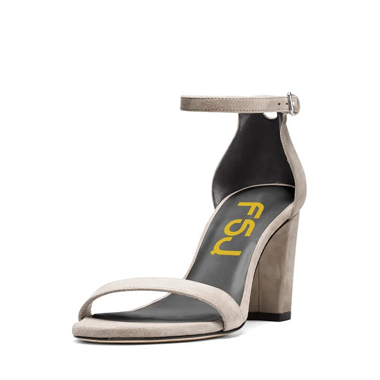 Women's Grey Vegan Suede Open Toe Buckle Ankle Strap Heeled Sandals