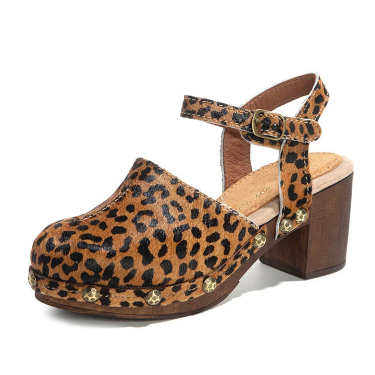 Elevate your style with these chic brown and black leopard print round toe ankle strap platform heels. Make a statement with comfort and flair in every step you take.