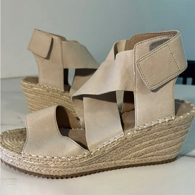 Custom Made Beige Open Toe Cross Strap Wedge Heel Espadrille Sandals