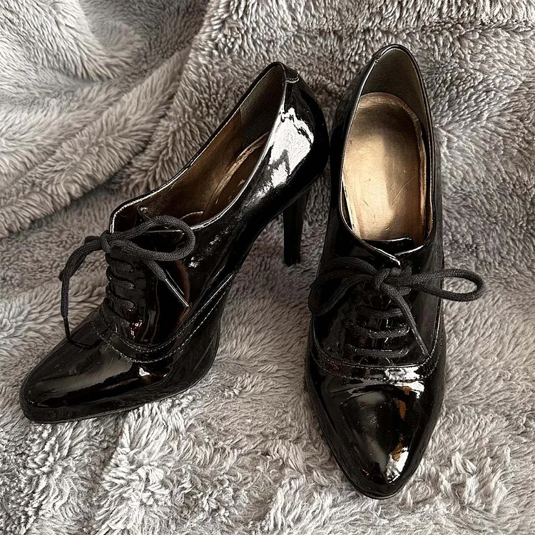 Custom Made Black Patent Leather High Heel Oxford Shoes Women