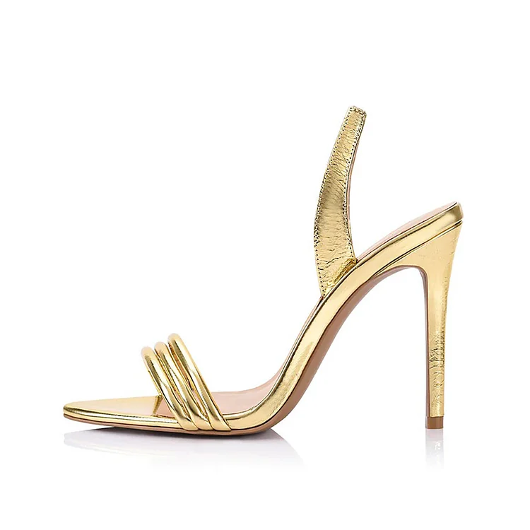 Custom Made Gold Metallic Finish Tubular Strap High Heels Sandals