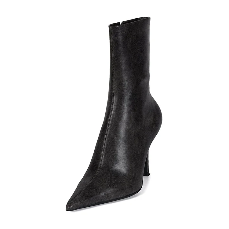 Step into sophistication with these Dark Gray Pointed Toe Stretch Short Booties. Featuring sleek stiletto heels, these versatile boots blend style and comfort effortlessly for the modern woman on the go.