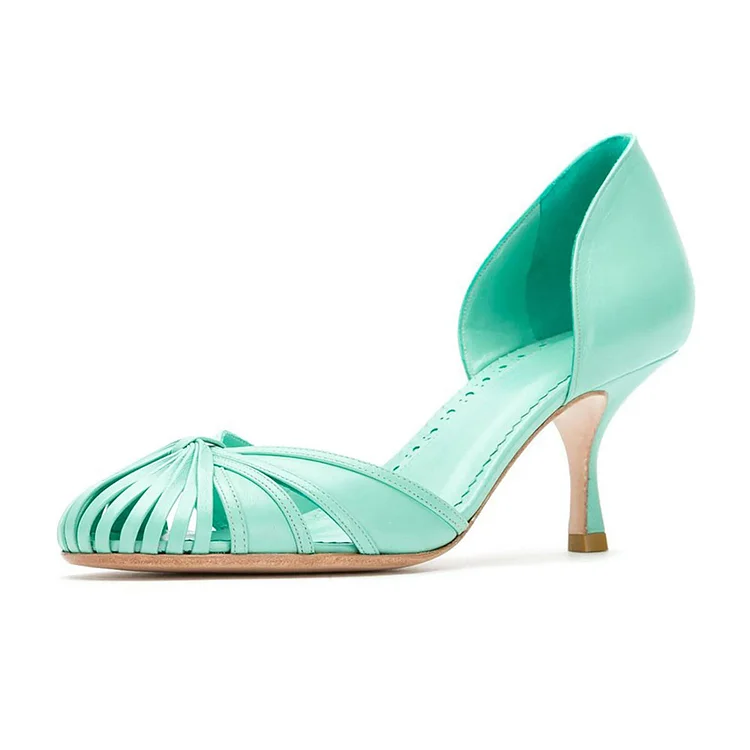 Elevate your style with these chic Turquoise Round Toe Cut Out Stiletto Heel Pumps. Perfect for women who crave fashion-forward footwear, blending sophistication with a touch of daring allure.