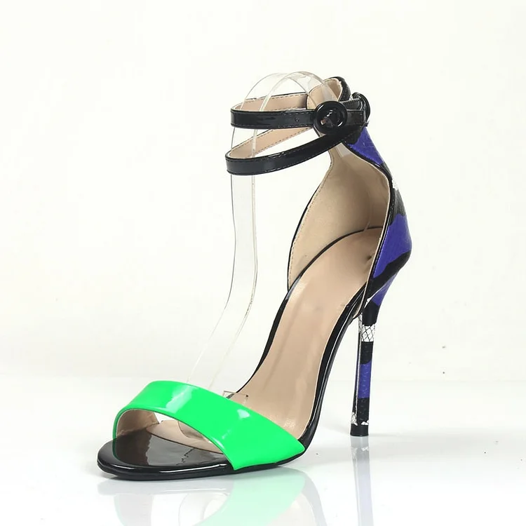 Green Ankle Strap Sandals Python Open Toe Stiletto Heels Shoes