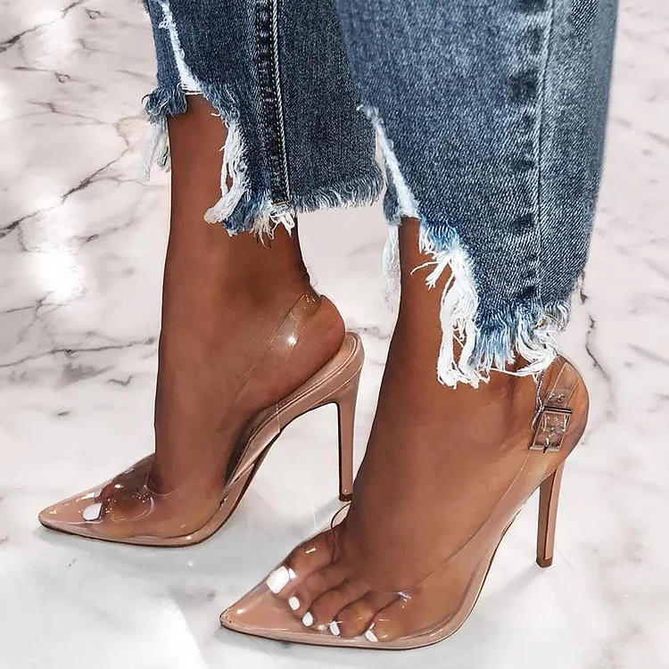 Trendy Clear Heels Pointed Toe Stiletto Shoes Slingback Pumps in Nude